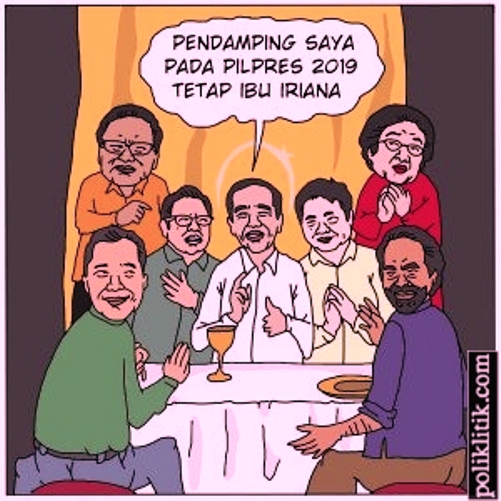 DI ATAS kertas, menghadapi Pemilihan Presiden April 2019, Joko Widodo lebih gagah perkasa dibandingkan saat akan menghadapi event serupa di tahun 2014. Didukung koalisi 6 partai –PDIP, Partai Golkar, PKB, PPP, Nasdem dan Hanura– dengan akumulasi perolehan suara 62,16 prosen, Joko Widodo hanya menyisakan satu peluang calon pasangan presiden-wakil presiden lain terkait dengan ketentuan presidential threshold. Tahun 2014, koalisi partai pendukung Joko Widodo –Koalisi Indonesia Hebat– jauh lebih langsing, tanpa Partai Golkar dan PPP. Namun mungkin berkat ‘kerja-kerja-kerja’, melalui satu intervensi berbalut kain sutera, Menteri Hukum dan HAM Yasonna Laoly ‘berhasil’ mengelola perselisihan internal di dua partai, Golkar dan PPP, untuk keuntungan penguasa. Hasil ‘rebus ulang’ dua partai itu kemudian menciptakan resultante akhir lepasnya dua partai itu dari Koalisi Merah Putih dan berpindah ke Koalisi Kerjasama Partai Pendukung Pemerintah. Follow the triumphant.