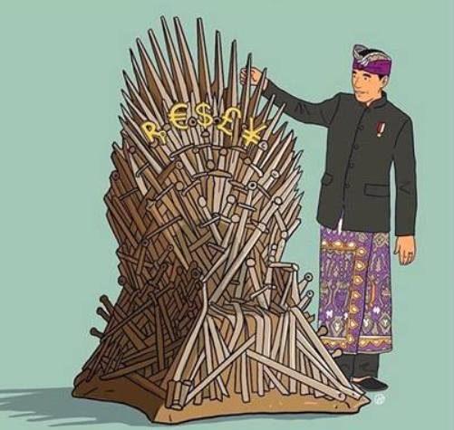 Kini, Joko Widodo sudah lebih banyak berada dalam model penampilan yang rapih dan perfect. Mengenakan setelan jas atau pun baju batik yang cantik motifnya, dan bagus jahitannya. Dalam berbatik, ia kelas atas. Tapi sekali-sekali saat pejabat bawahannya tampil berbatik atau berstelan jas, Joko Widodo malah tampil berkaos oblong. Juga banyak mengadopsi gaya milenial, tak segan berjoget dan melakukan jumping dengan sepeda motor besar meski sebagian memakai jasa stuntman. Referensi pidatonya pun makin mengikuti trend, semisal kisah filmis fantasi The Avengers dengan tokoh antagonis Thanos. Lalu, serial Game of Thrones –bertema persaingan kekuasaan memperebutkan Iron Throne, you win or you die, di 7 kerajaan antah berantah, dengan bahaya sesungguhnya klan Stark yang protagonis dari daerah utara Winter’s Fell.