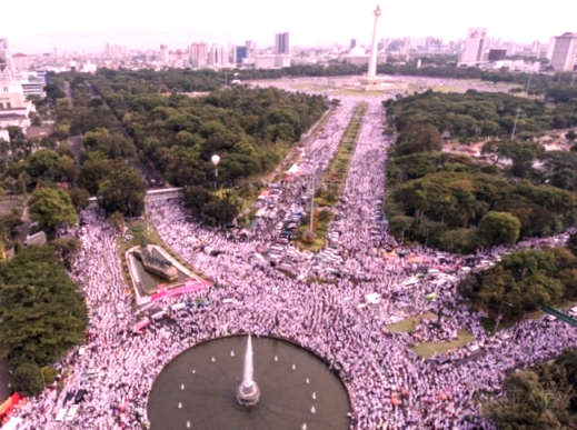 Polemik soal jumlah massa secara kuantitatif, sebenarnya tak perlu dilakukan. Kasat mata semua bisa melihat melalui siaran tvOne –satu-satunya media yang meliput lengkap– bagaimana kepadatan massa di area yang luas, yang sebelumnya hingga sejauh ini belum pernah terjadi. Dan, dalam konteks kontestasi pemilihan presiden yang sedang berlangsung, tuduhan kampanye terselubung menyempitkan persoalan sebagai bagian dari politik praktis. Tanpa sengaja malah seakan menjadi semacam pengakuan tentang kehebatan pihak seteru dalam mengorganisasikan pengumpulan massa yang massive. Seorang pendukung petahana merasa perlu memperbandingkan, dalam sebuah talkshow televisi, bahwa Jokowi tak perlu mendatangkan berjuta-juta rakyat ke satu tempat tetapi mendatangi berjuta-juta orang di mana-mana setiap saat.